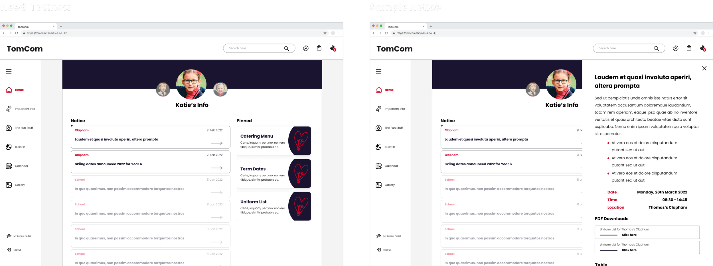 Thomas’s communication channels with parents were disjointed and ineffective, causing parents and guardians to miss important information regarding their students. Our goal was to create an online portal that streamlined each school's existing communication channels while accommodating a diverse range of content onto one platform for users.